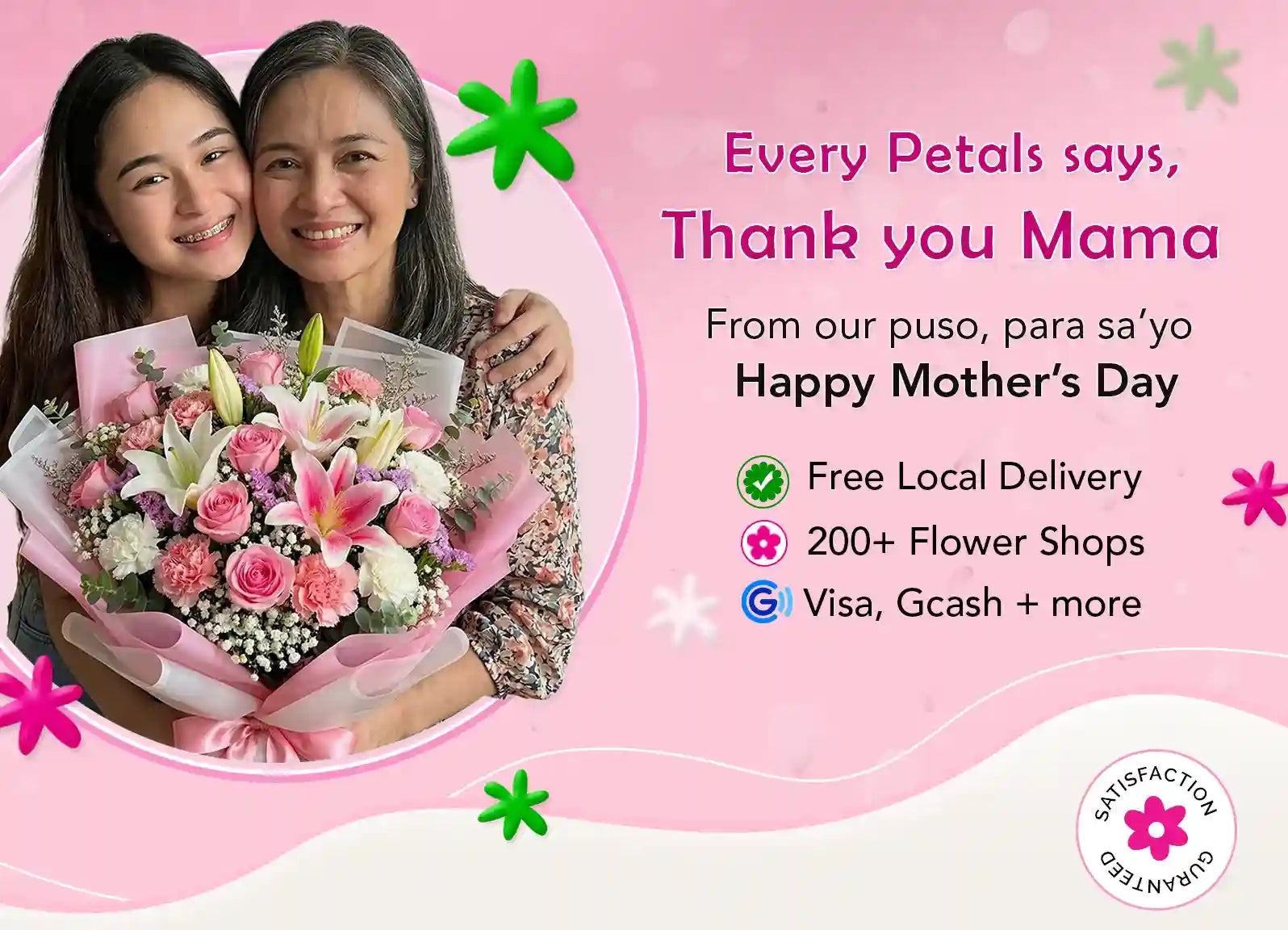 The Floral Delights team speaks Tagalog, Bisaya, English and the language of flowers. Available 24/7, we focus on making every delivery smooth and stress-free. By working with one trusted florist per location and supporting them with a dedicated customer care team, we ensure every bouquet arrives fresh, beautiful, and just right. It’s our pleasure to help you share joy through flowers, and we’re proud to serve so many happy customers across the Philippines.