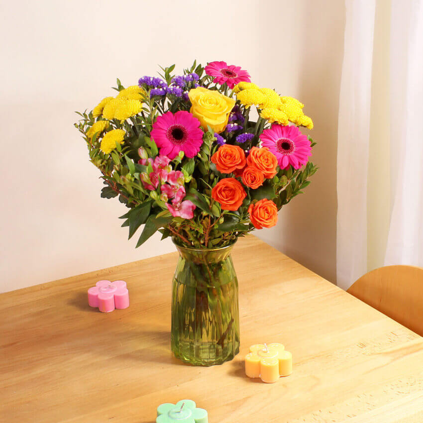 Indulge in the exquisite charm of our Blazing Beauty bouquet, a dazzling ensemble featuring Craspedia, Gemini, Tulips, and Roses, meticulously selected to infuse your home with vibrant elegance. Handcrafted by our experienced local florists, you can order this stunning arrangement online before 2 PM for same day hand delivery, ensuring every special moment is adorned with floral splendor. This bouquet makes an amazing Easter gift. Order yours online today.