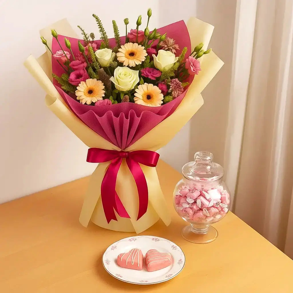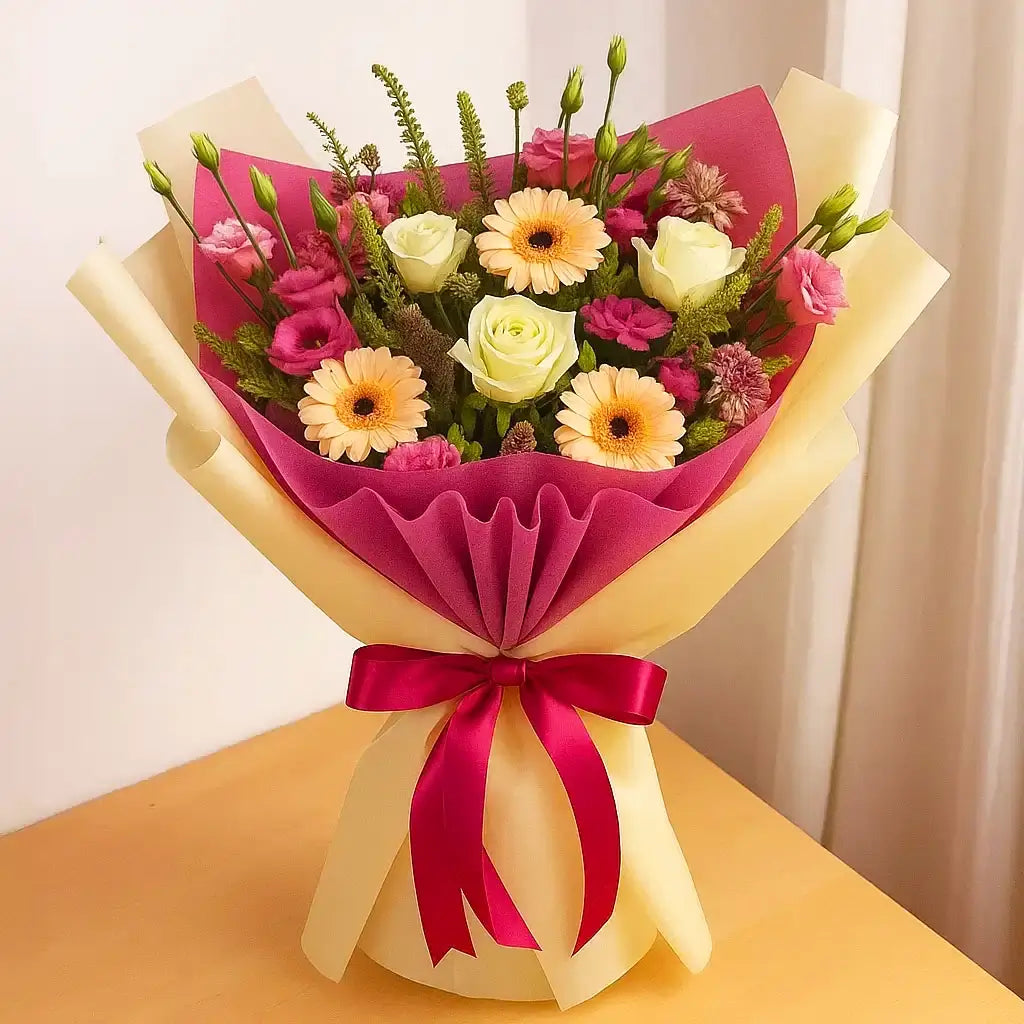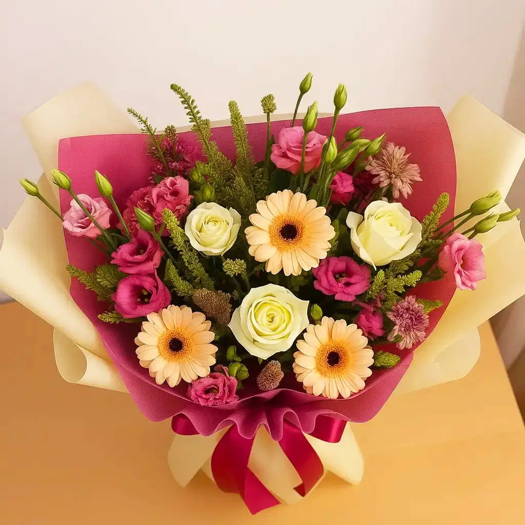 This simple yet stunningly beautiful Eliza bouquet is hand made by our local florists and is the perfect gift to brighten anyone's day. Make someone smile with our hand tied Eliza bouquet. This bouquet will be handcrafted by an experienced florist, order for same day delivery by hand, or next day delivery via our courier.