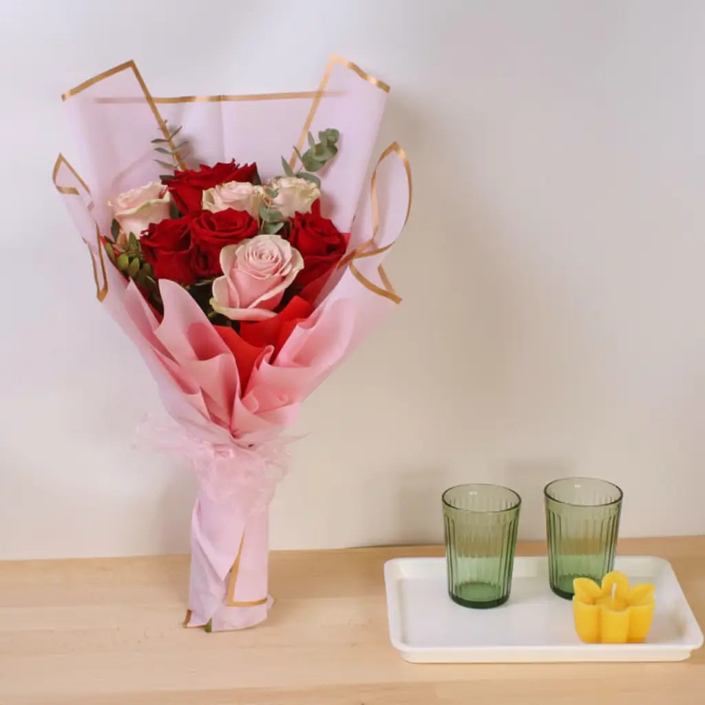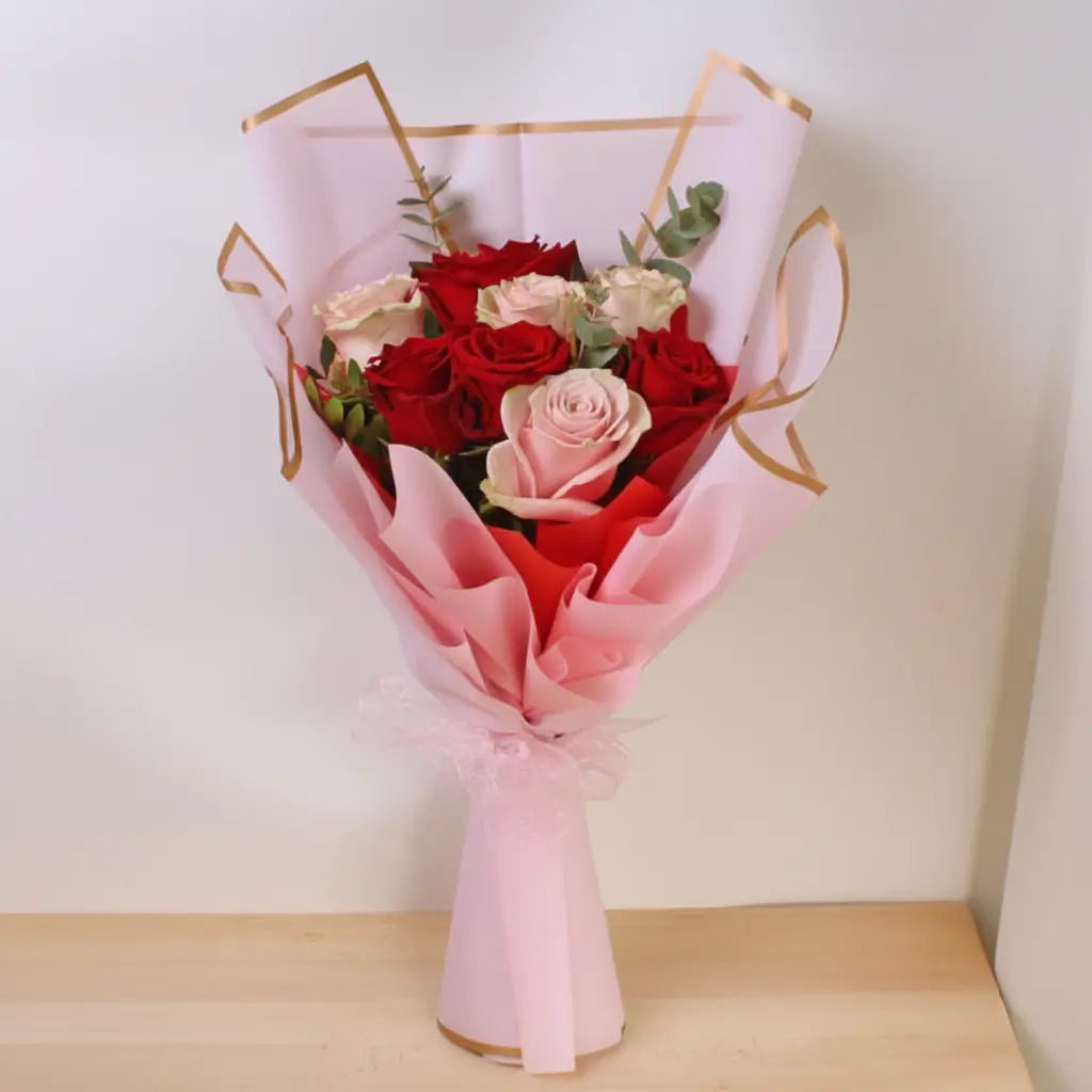 Eternal Love is a breathtaking bouquet of pink and red roses, symbolizing enduring affection and heartfelt passion. The red roses convey deep, romantic love, while the pink roses add a touch of grace, admiration, and sweetness. Perfect for anniversaries, proposals, or any moment that deserves a lasting impression, this bouquet beautifully captures the timeless essence of true love.
