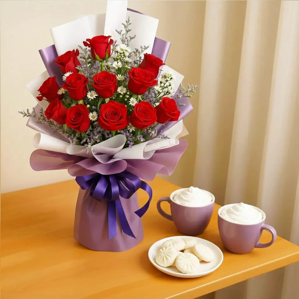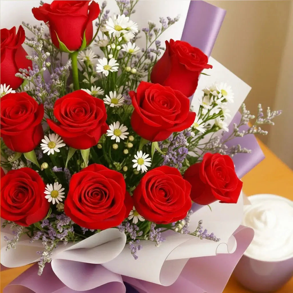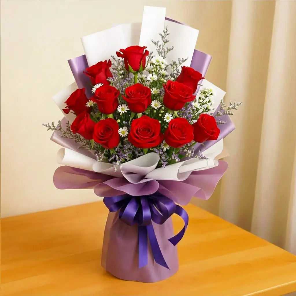 Gift tranquility and charm with our Lavender Dreams bouquet with calming essence, promising peaceful wishes and deep affection. Our vibrant locally grown red roses are enveloped in sophisticated lavender hues, with calming magical glow. Ideal for expressing romantic devotion, wishing someone peaceful repose, or celebrating a life well-lived. Let your love and wishes bloom. Order the enchanting Lavender Dreams bouquet today!