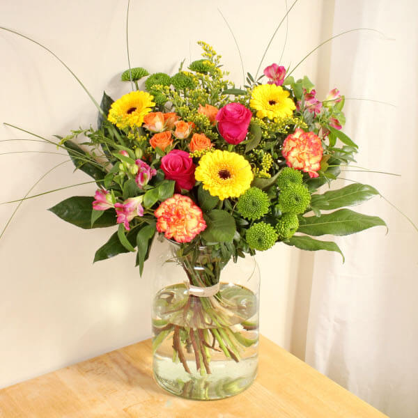 Our handcrafted Oriana bouquet is a combination of bright, beautiful blooms that will delight and brighten anybody's day. The perfect, versatile, floral bouquet for any occasion. This bouquet will be handcrafted by an experienced florist, and delivered by hand.