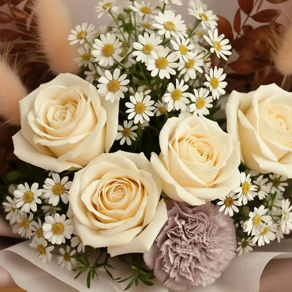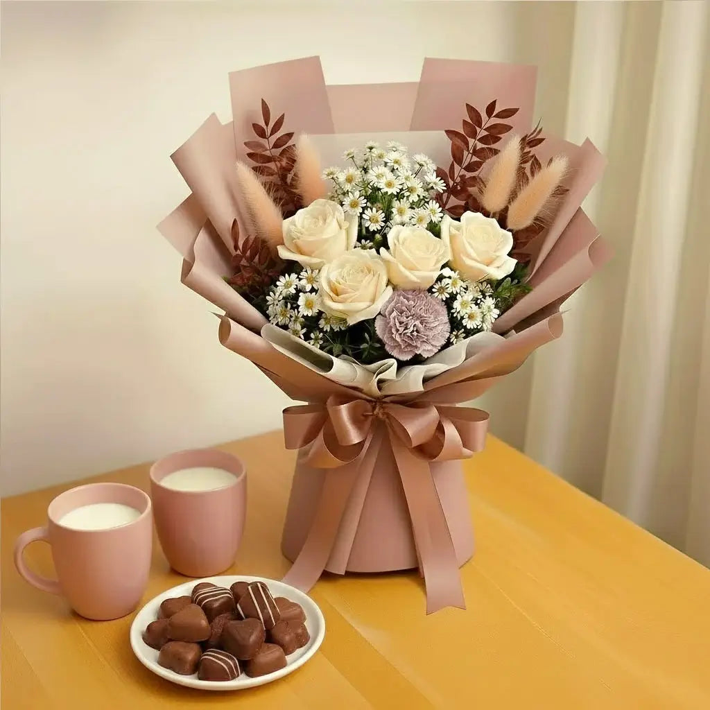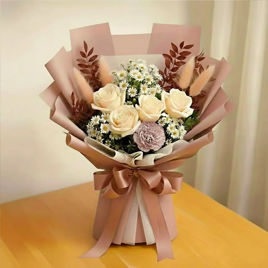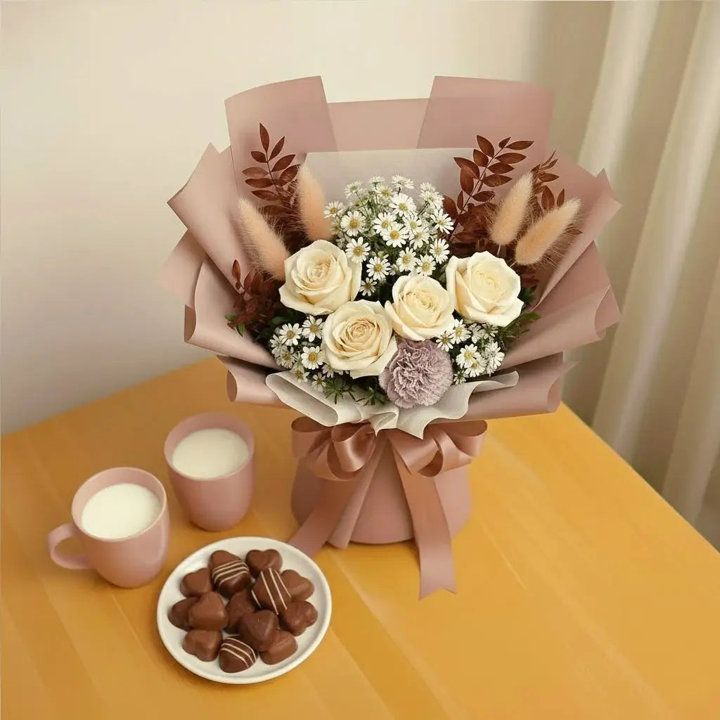 Send a gentle whisper of affection with the Rustic Whisper bouquet. Featuring soft local peach roses and elegant dried elements, this arrangement captures the beauty of the autumn season. The roses are freshly picked in the region for superb quality. Perfect for conveying subtle grace, comfort, or admiration. Don’t just whisper, Rustic Whisper it today and let this quiet beauty speaks volumes.