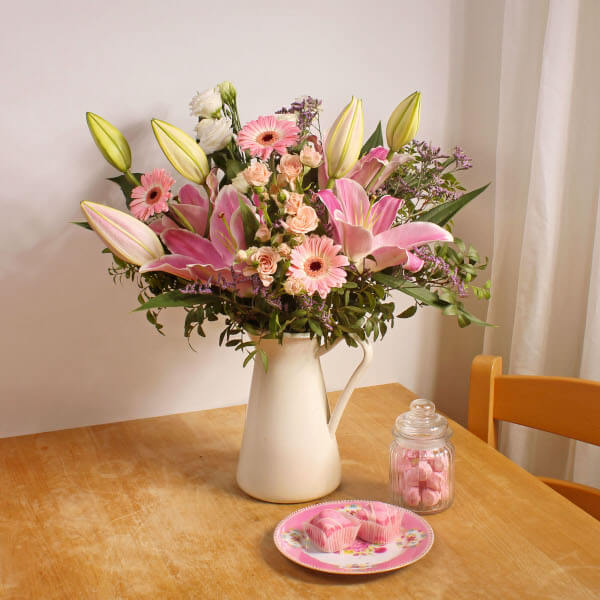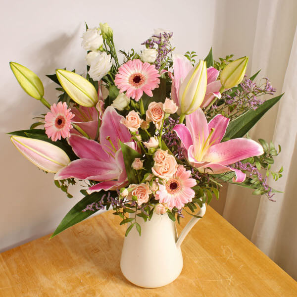 Embrace nostalgia with our hand-created bouquet, showcasing a delightful fusion of Germini, Lily, and Roses. Sourced sustainably and ethically, these flowers not only evoke cherished memories but also promote eco-consciousness. Buy online today from our trusted florist and have your order of fresh flowers delivered directly to your loved ones, or as a well deserved treat to yourself. This arrangement is an excellent gift for Easter or any special occasion.