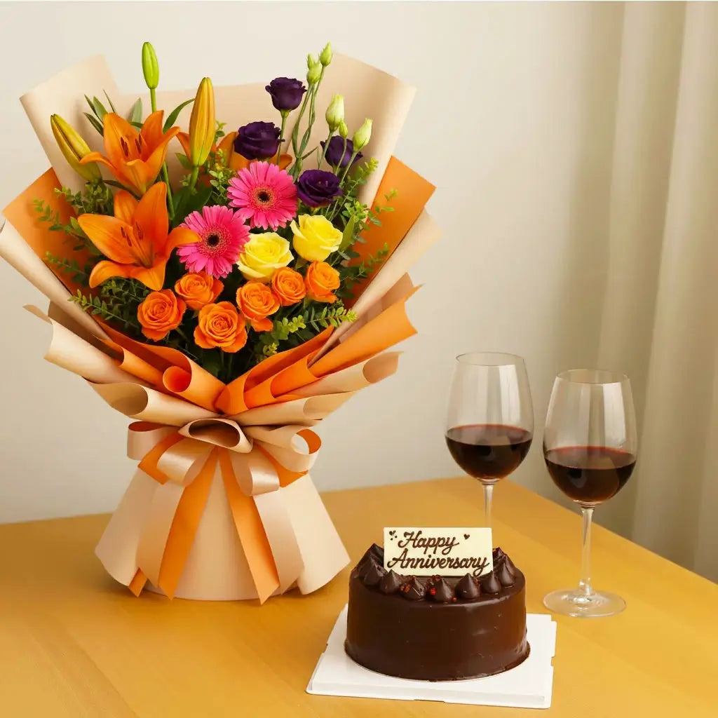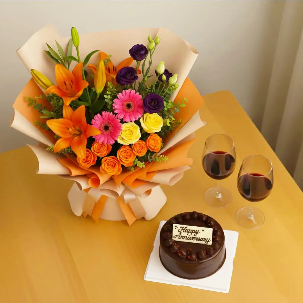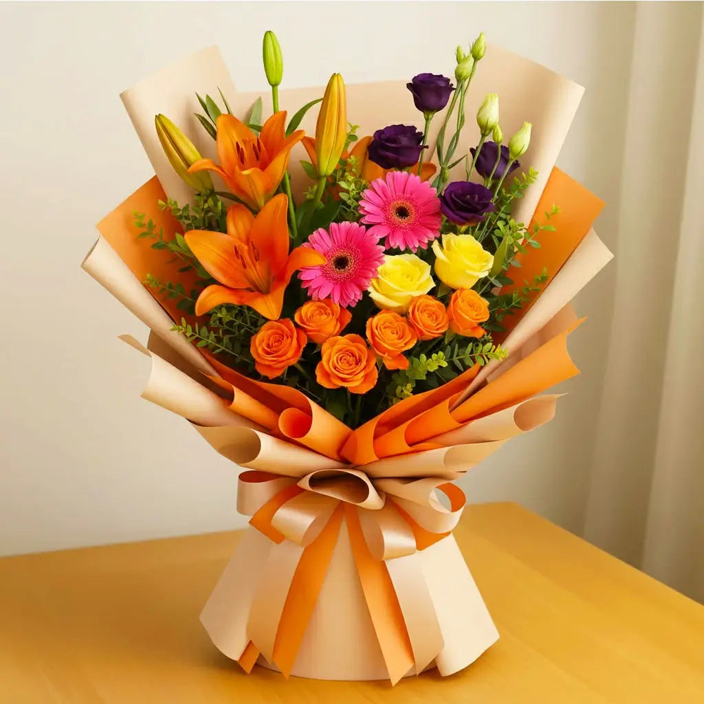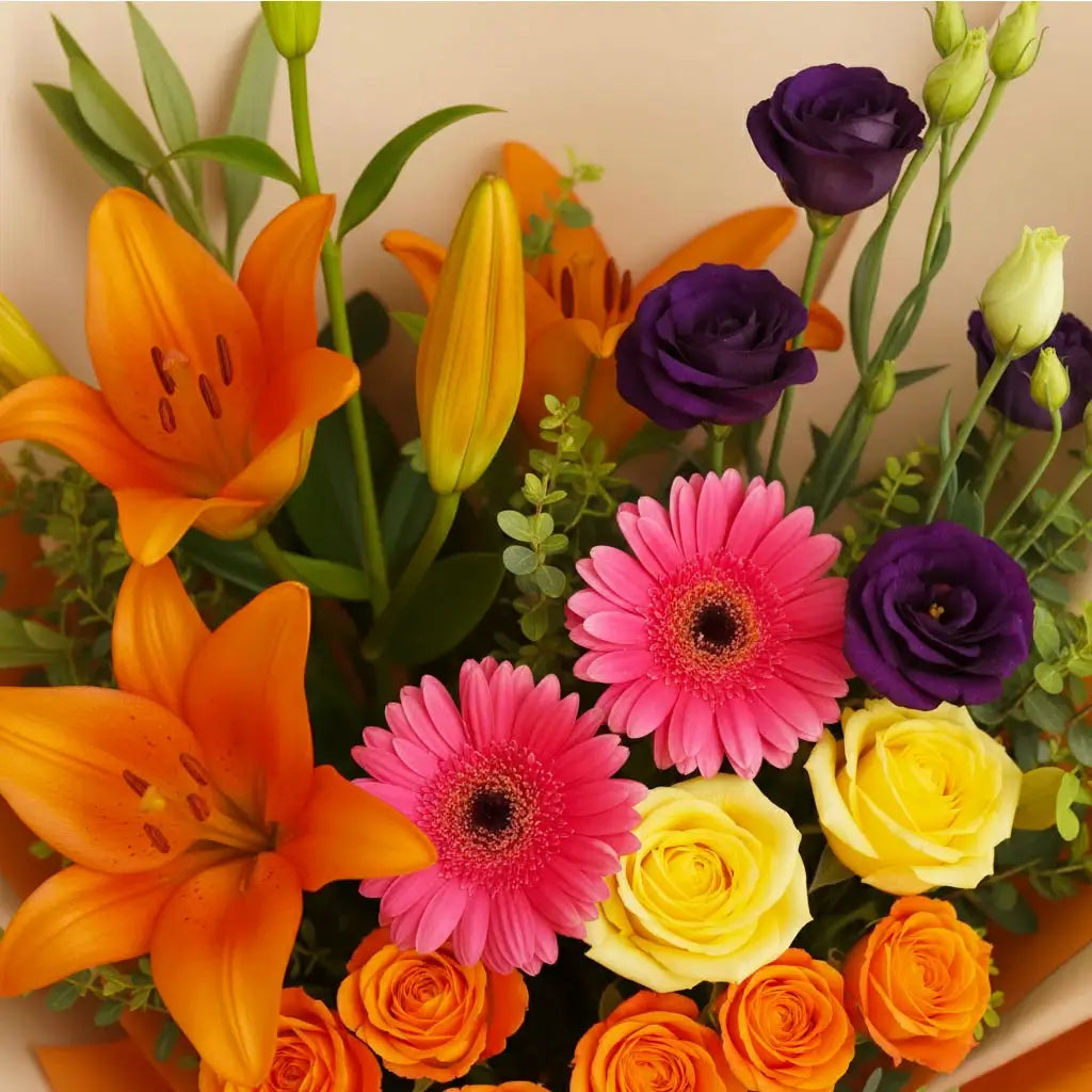 A brilliant blend of seasonal flowers, this handcrafted combination of hand cut Germini and Roses makes a delightful gift for any occasion. Our ethically sourced, sustainable flowers are freshly hand cut and guaranteed to brighten anyone's day.